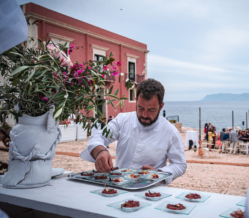 Their personal and professional partnership gave rise in 2008 to Ristorante Coria in Caltagirone, awarded a Michelin Star in 2012, and in 2013 to Squiseating. This ambitious project brings gourmet cuisine into the world of banqueting excellence.